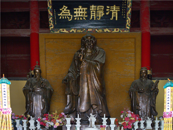 老子(约公元前571年—公元前471年),字伯阳,谥号聃,又称李耳(古时“老”和“李”同音;“聃”和“耳”同义),楚国苦县历乡曲仁里(今安徽涡阳)人。 曾做过周朝“守藏室之官”(管理藏书的官员),是中国最伟大的哲学家和思想家之一,被道教尊为教祖,世界文化名人。老子的思想养生主张是“无为”---不消耗,《老子》以“道”解释宇宙万物的演变,“道”为客观(道:宇宙能量现象)自然规律,同时又具有“独立不改,周行而不殆”的永恒意义。《老子》书中包括大量朴素辩证法观点,如以为一切事物均具有正反两面,并能由对立而转化,是为“反者道之动”,“正复为奇,善复为妖”,“祸兮福之所倚,福兮祸之所伏”。又以为世间事物均为“有”与“无”之统一,“有、无相生”,而“无”为基础,“天下万物生于有,有生于无”。他关于民众的格言有:“天之道,损有余而补不足,人之道则不然,损不足以奉有馀”;“民之饥,以其上食税之多”;“民之轻死,以其上求生之厚”;“民不畏死,奈何以死惧之?”。他的哲学思想和由他创立的道家学派,不但对中国古代思想文化的发展作出了重要贡献,而且对中国2000多年来思想文化的发展产生了深远的影响。2014年,“老子传说”入选第四批国家级非物质文化遗产名录。涡阳县有天静宫,纪念这位伟人。