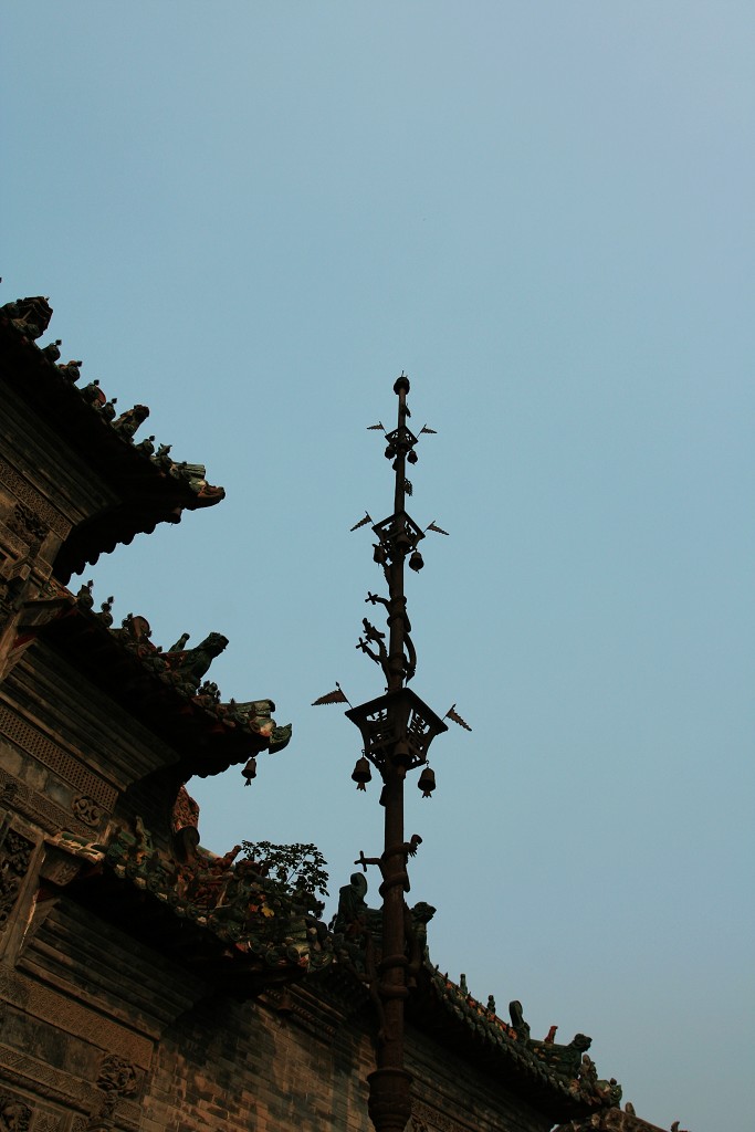 花戏楼景区有 “三绝”:大关帝庙山门前耸立铁旗杆一对,直插云霄,旗杆高16余米,重两万四千斤,因其构思巧妙、铸造精细被称为花戏楼一绝;第二绝是山门上镶嵌的立体水磨砖雕,共雕人物115人,禽鸟33只,走兽67只,玲珑剔透,琳琅满目,不仅场面宏大,且雕工细腻;与山门紧紧相连的戏台上镶满大杨木透雕,共刻有十八出三国戏文题材的木雕作品,里里外外六百多个人物,因其精湛的雕工和绚丽的彩绘被誉为花戏楼景区一绝。