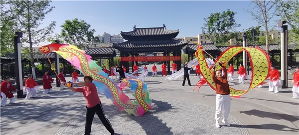最后,华佗广场舞龙队在健身气功六字诀展演的包围圈中进行了花样舞龙的精彩展示,百余名指导员同台竞技,场面异常丰富多彩,“快乐健身”氛围拉满,把展演活动推向高潮。
