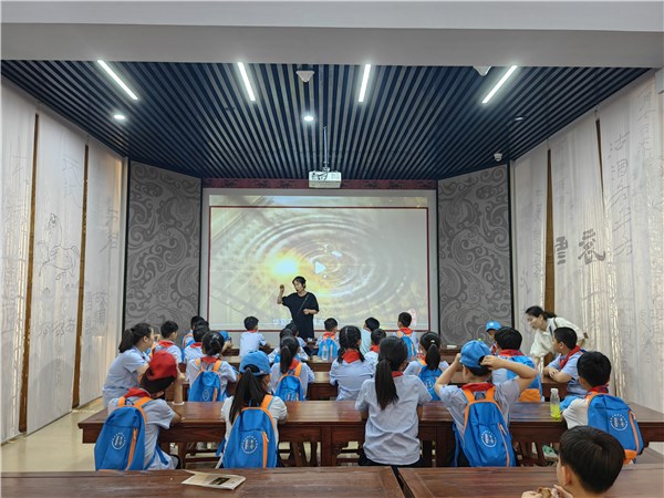参与此次活动的是育才小学三年级九班的学生,他们先跟着讲解员薛松涛参观了一遍市博物馆的陈列展览,加深了对亳州名人历史的理解,而后在亳博学堂内观看了系列中医药宣传短片。在短片第一章源远流长的中医文化播放结束,讲解员何晓蝶跟小朋友们进行了互动式畅谈,短片里关于神医华佗的故事很多人耳熟能详,但对于亳州的小朋友来说,相比于医学家孙思邈、李时珍,创制麻沸散的华佗让他们多了同为亳州人的骄傲。“走进博物馆这样的实践活动,可以让学生们实实在在的了解亳州文化,增长他们的见识,作为四大药都之首,感受深厚的中医药文化对学生是很有必要的。”班主任宋文慧老师表示。