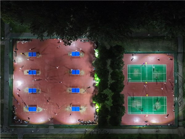 8月3日夜晚,市民在亳州市谯城区陵西湖体育公园的运动场打球健身。为打造城市社区“15分钟健身圈”,满足市民就近健身需求,近年来,亳州市谯城区持续完善体育健身基础设施,在城市湿地公园、森林公园、街边公园等建设篮球场、乒乓球场、健身步道等,配套完善夜间亮化工程,打造层次丰富、环境优美的城市休闲健身空间,让市民在家门口快乐健身。