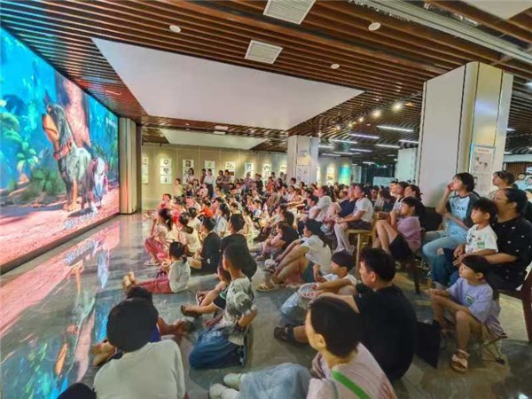 夜晚的大雨浇不灭大家的期待,尽管电影还未开始,但闻讯而来的市民早早地带着孩子找到了观影的绝佳位置。晚上7点,电影准时开场。室外的大雨,掩盖不住展厅里的惊呼声与欢笑声,跌宕起伏的故事情节牵动着观众的心情,大朋友和小朋友们随着电影主人公的惊险奇遇而惊呼,又因主人公的诙谐而放声欢笑。一楼城市阅读空间同步开放,市民也可以在书籍和阅读的海洋中畅游。活动引得市民强烈反响,收获一致好评,大家表示现场也很有氛围感,带着孩子在文化馆一起看电影,不仅让孩子多了一次“新”体验,在观看中学习主人公不放弃永远拼搏的精神,也是自我放松的好机会。