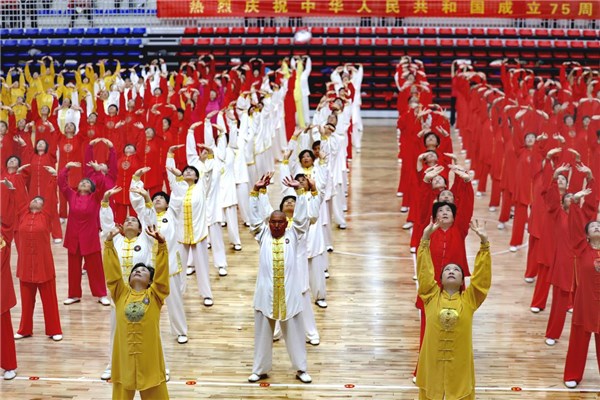 活动伊始,伴随着悠扬的乐曲,全场千余名中老年五禽戏爱好者集体展示了健身气功五禽戏,他们身着五颜六色的练功服,个个精神饱满,动作柔和舒展,队伍整齐划一,充分彰显了健身气功的独特神韵,营造了浓厚的全民健身氛围。