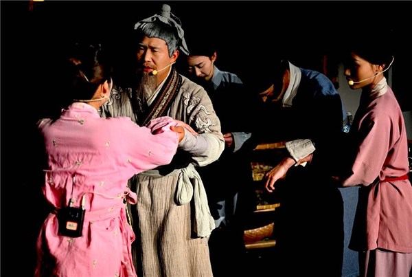 1月5日,在亳州市华佗百草园,演员在表演行浸式演艺剧《一代神医》。